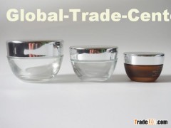 Glass cosmetic container which is with high transparency and heavy weight, can be made with many beautiful decorations to eye-catch the consumers and protect the inside material very well.
